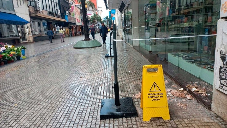 A raíz del temporal hubo inconvenientes en la zona de calle San Martín al 2.400. Vallaron el lugar y se instaba a circular con precaución.