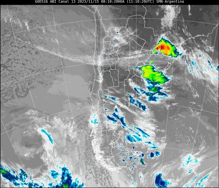 A través de su sitio web oficial, el Servicio Meteorológico Nacional divulgó la imagen satelital con los frentes de tormentas que afectan a la región central del país y el litoral.