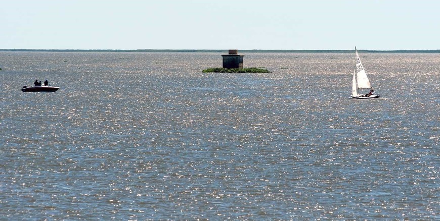 Es constante la llegada de vegetación que se acopla al ya nuevo y avanzado embalsado de la Laguna Setúbal. En la zona del faro y los viejos pilotes del puente ferrocarril, nuevamente la vegetación acuática se estaciona en el lugar y forma un embalsado.