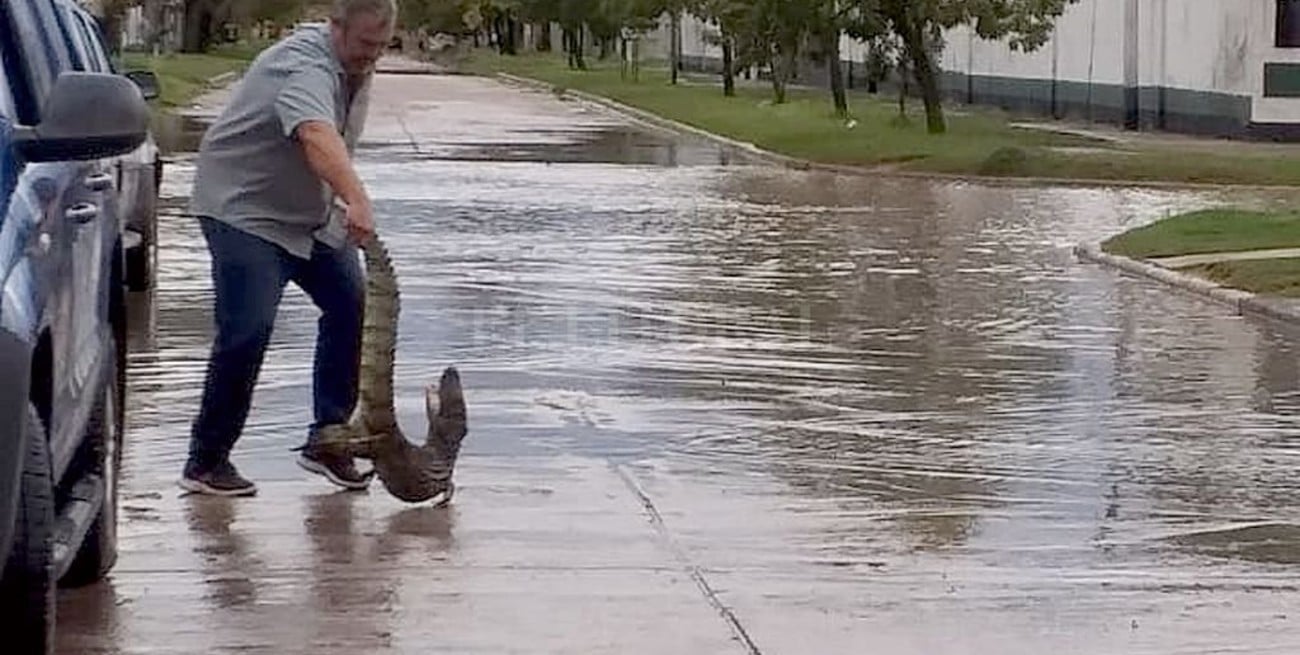 Al llegar el personal policial, un vecino que tiene un comercio en la zona pudo levantar el yacaré y subirlo a la camioneta de la policía, quienes lo liberaron en una zona rural.