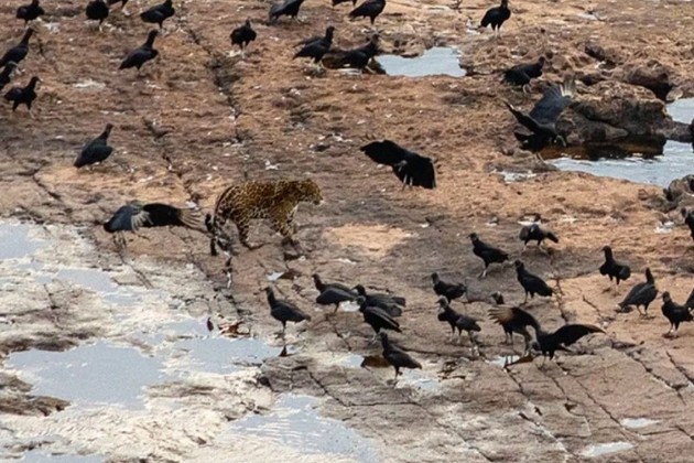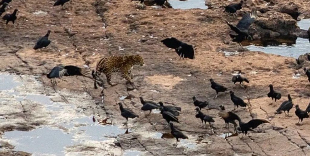 Un yaguareté fue retratado en medio de una bandada de pájaros durante un safari fotográfico en el Parque Nacional Iguazú y la imagen se volvió viral.