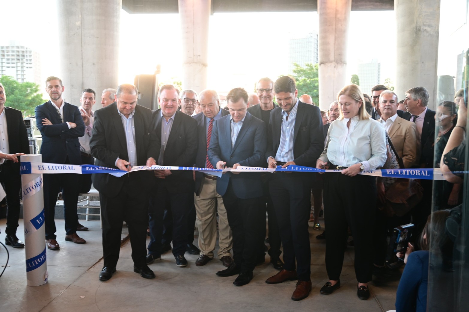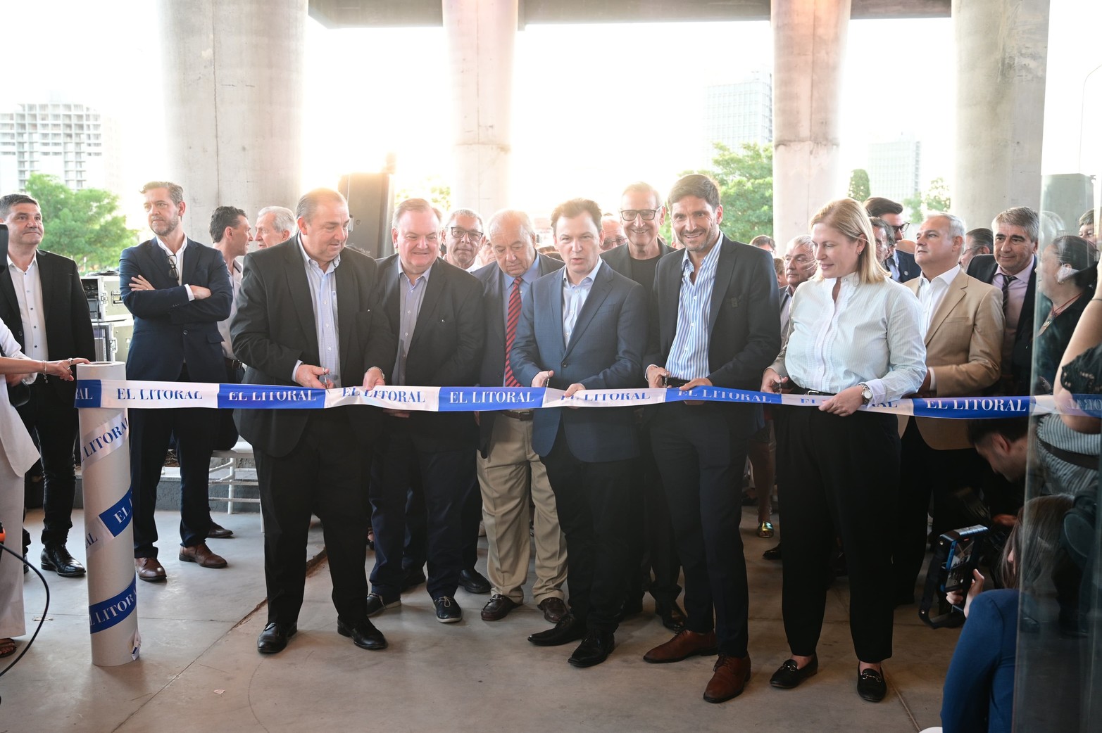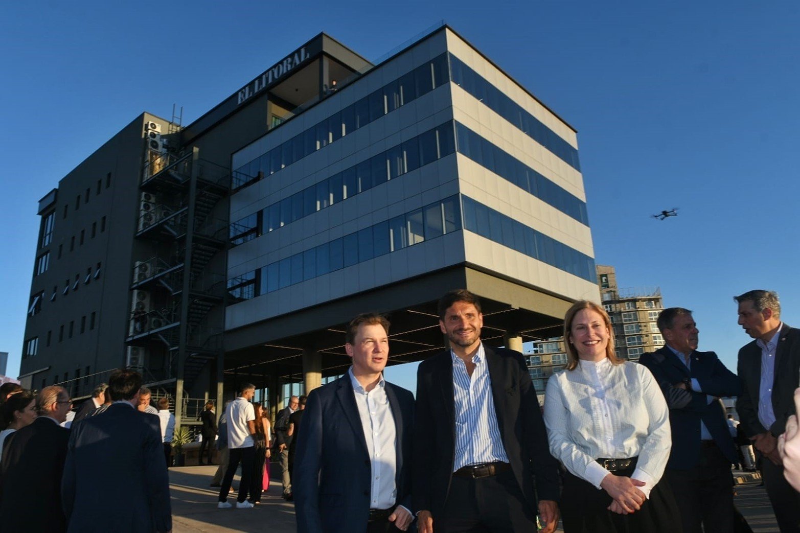 2 / 12 El CEO de El Litoral, Nahuel Caputto junto a Maximiliano Pullaro, Juan Pablo Poletti y Gisela Scaglia en la inauguración del edificio. Foto: Foto: Flavio Raina | El Litoral