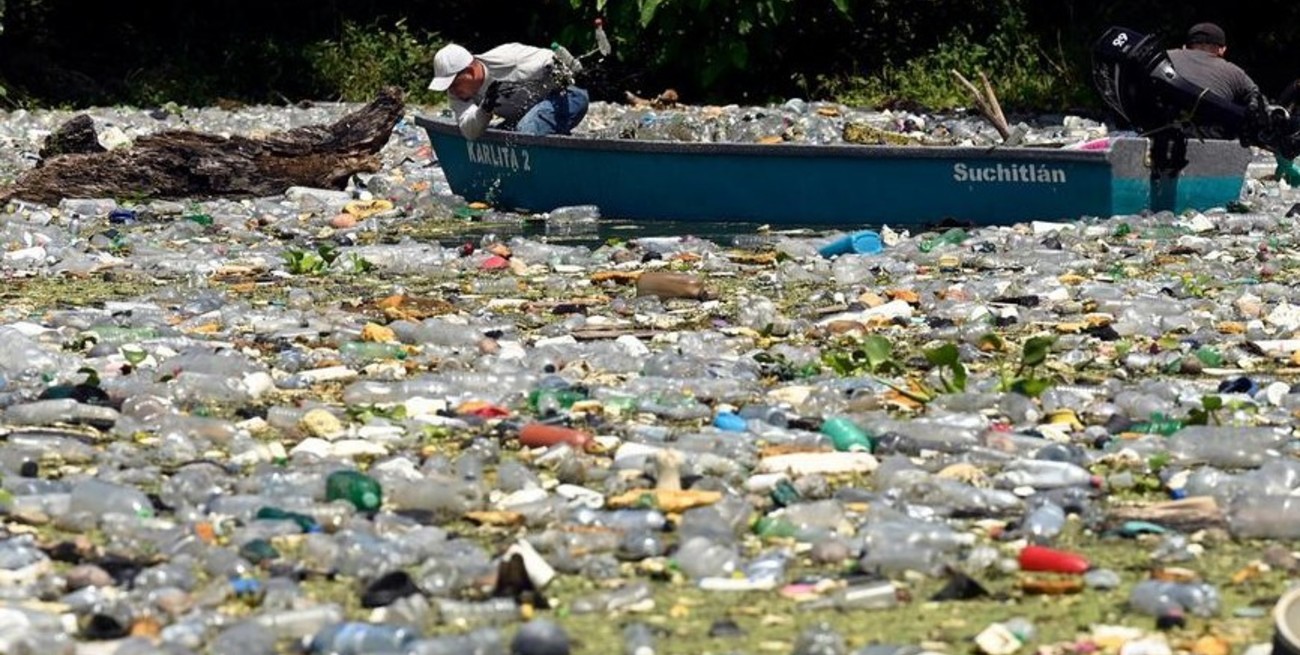Residuos plásticos en la represa de Cerrón Grande, El Salvador.