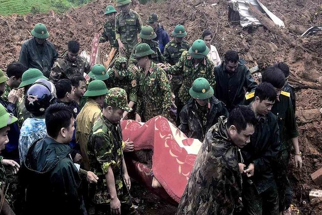 Al menos 22 cuerpos de soldados fueron recuperados tras quedar enterrados por los gigantescos deslizamientos de tierra ocurridos en Vietnam este domingo, informaron las autoridades locales.
