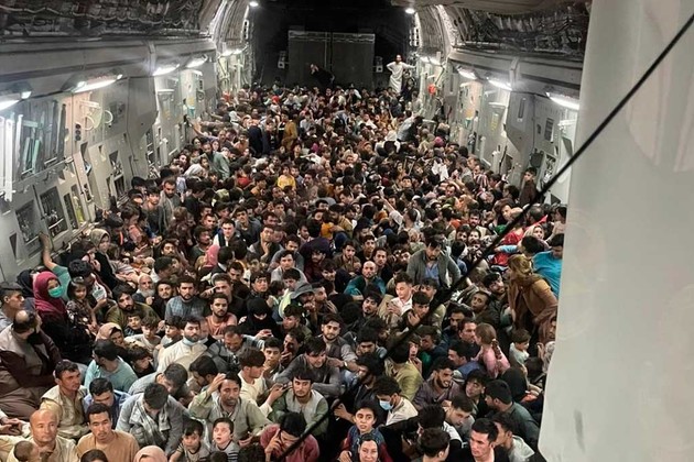 A pesar de que el avión está diseñado para transportar a tan solo 134 militares totalmente equipados o unos 77.500 kilogramos de carga, cientos de civiles lograron apiñarse en la bodega de la aeronave. Huyen en masa del país luego del retorno al poder del movimiento islamista radical Talibán*.