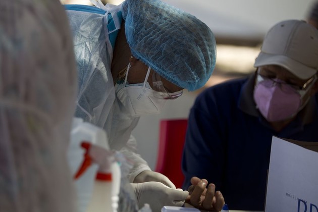 Xinhua (210108) -- OJOJONA, 8 enero, 2021 (Xinhua) -- Una trabajadora de la salud toma una muestra a un hombre para una prueba rápida de detección de la enfermedad causada por el nuevo coronavirus (COVID-19), en el municipio de Ojojona, Honduras, el 8 de enero de 2021. Ante el incremento de casos y muertos por la enfermedad del nuevo coronavirus (COVID-19) en América Latina, varios países de la región han reforzado las medidas sanitarias para contener el virus, sobre todo ahora que se reportan más contagios de la variante detectada en Reino Unido. (Xinhua/Rafael Ochoa) (ro) (ra) (da) (vf)Xinhua (210108) -- OJOJONA, 8 enero, 2021 (Xinhua) -- Una trabajadora de la salud toma una muestra a un hombre para una prueba rápida de detección de la enfermedad causada por el nuevo coronavirus (COVID-19), en el municipio de Ojojona, Honduras, el 8 de enero de 2021. Ante el incremento de casos y muertos por la enfermedad del nuevo coronavirus (COVID-19) en América Latina, varios países de la región han reforzado las medidas sanitarias para contener el virus, sobre todo ahora que se reportan más contagios de la variante detectada en Reino Unido. (Xinhua/Rafael Ochoa) (ro) (ra) (da) (vf)