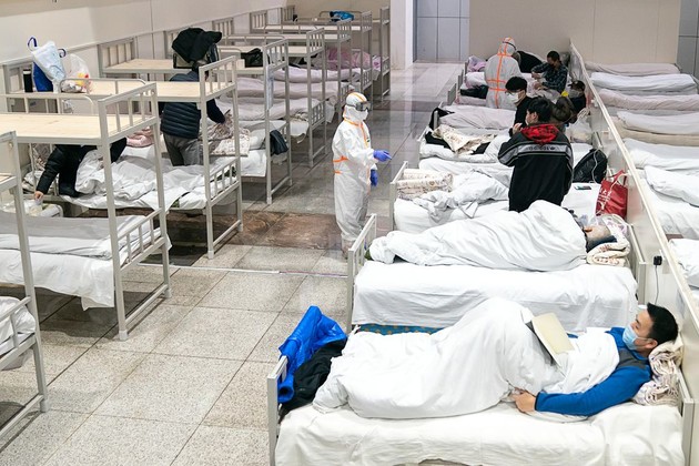 Xinhua News Agency BEIJING, Feb. 5, 2020 -- Patients infected with the novel coronavirus are seen at a makeshift hospital converted from an exhibition center in Wuhan, central China's Hubei Province, Feb. 5, 2020. TO GO WITH "Virus-hit Wuhan speeds up diagnosis of patients" (Photo by Xiong Qi/Xinhua via Getty) (Xinhua/Xiong Qi via Getty Images)Xinhua News Agency BEIJING, Feb. 5, 2020 -- Patients infected with the novel coronavirus are seen at a makeshift hospital converted from an exhibition center in Wuhan, central China's Hubei Province, Feb. 5, 2020. TO GO WITH "Virus-hit Wuhan speeds up diagnosis of patients" (Photo by Xiong Qi/Xinhua via Getty) (Xinhua/Xiong Qi via Getty Images)