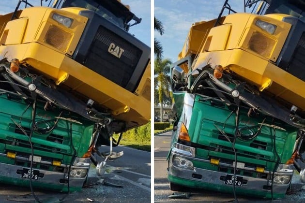 Impactante accidente en Malasia: un remolque quedó aplastado al desplomarse el camión que transportaba