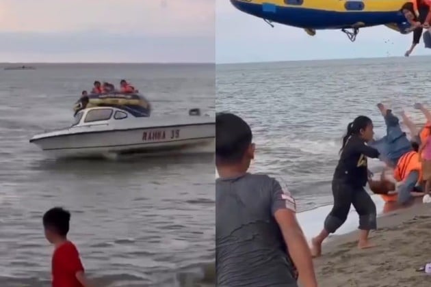 Un paseo recreativo en la playa Pantai Harapan Ammani, terminó en una escena caótica cuando una lancha que remolcaba un inflable se acercó a gran velocidad a la orilla, hizo una maniobra brusca y provocó que cinco turistas salieran despedidos sobre la arena. El impacto alcanzó también a personas que estaban en la playa y dejó varios heridos, entre ellos una nena.