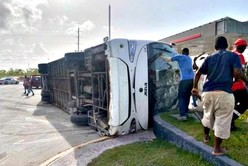 En las imágenes del accidente que fueron reveladas la última semana se ve cómo un micro ocupado íntegramente por turistas que se dirigía a la Isla Saona perdió el control en una curva, cuando su conductor quiso esquivar a un auto y a un camión en el Boulevard Turístico del Este, a la altura de la Bomba Total del Cruce de la Mina.