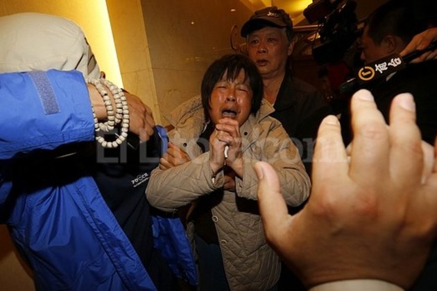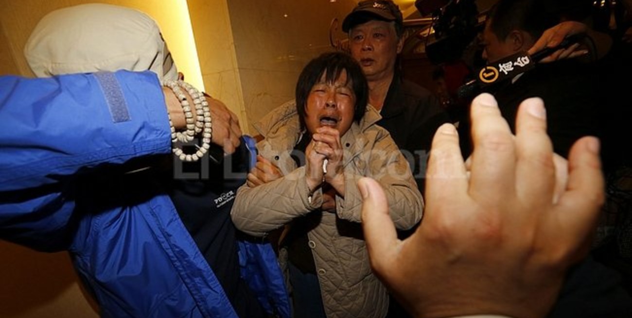 Los familiares de los viajeros chinos que embarcaron en el vuelo MH370 mostraron hoy su dolor, pero también su rechazo, al ser informados de que el avión de Malaysia Airlines desaparecido desde el pasado 8 de marzo se estrelló en el océano Índico.