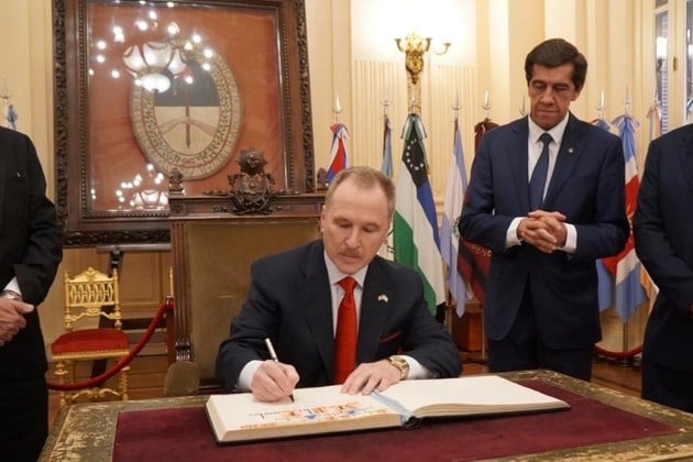 Peter Lamelas aún debía completar el domingo su mini gira por el norte argentino visitando Jujuy y sentándose junto al gobernador Carlos Sadir.
