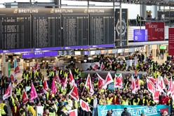 La manifestación ampliará su alcance el viernes, ya que Verdi le pidió al personal de seguridad del aeropuerto de Stuttgart que se una a los paros, lo que llevó a la central aérea a cancelar todas las salidas.
