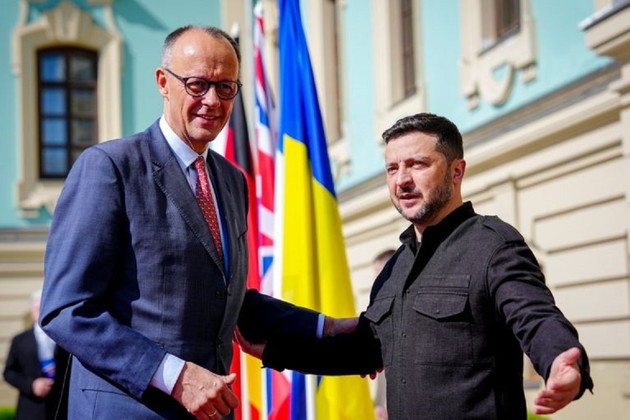 El canciller alemán Freidrich Merz junto al presidente ucraniano Volodimir Zelenski.