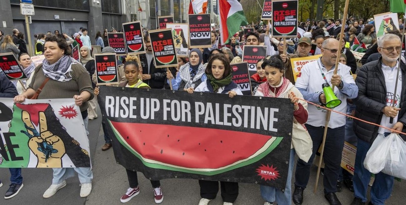 Bajo consignas como "¡Levántate por Palestina!", unas 32.000 personas protestaron en la capital de Bélgica.