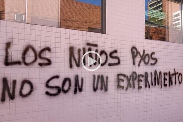 En la mañana de este sábado, en las paredes del diario ABC Color de la ciudad de Asunción (Paraguay), se realizaron algunos grafitis que expresaban una postura contra la vacunación anticovid en niños .