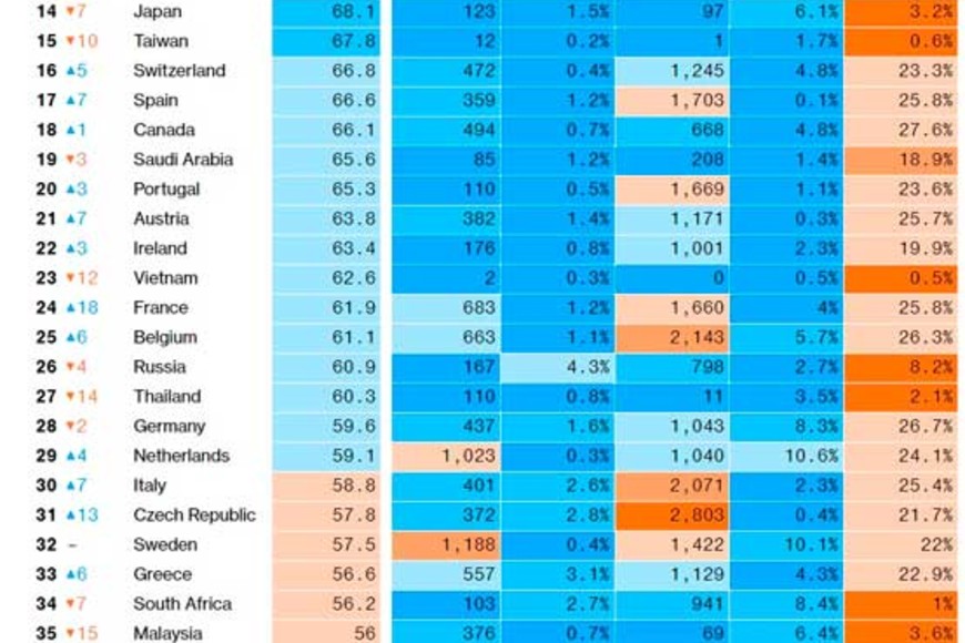 Según un informe elaborado por la agencia Bloomberg, Argentina volvió a retroceder dos lugares y quedó última dentro de un ranking de 53 países.