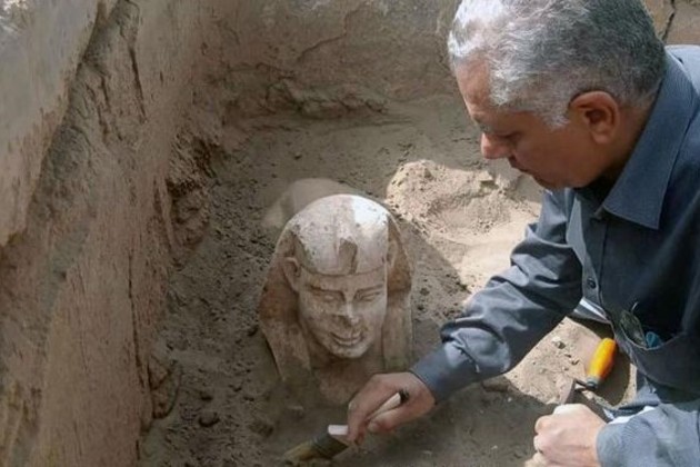 La esfinge fue encontrada dentro de una cabaña que los expertos egipcios afirman que pertenece al emperador Claudio: "Los restos de la cabaña son una plataforma que consta de dos niveles y suelos inclinados, dentro de la cual se encontró un depósito de almacenamiento de agua" destacó el jefe de la misión, Mamduh al Damati, en un comunicado del Ministerio de Antigüedades egipcio.