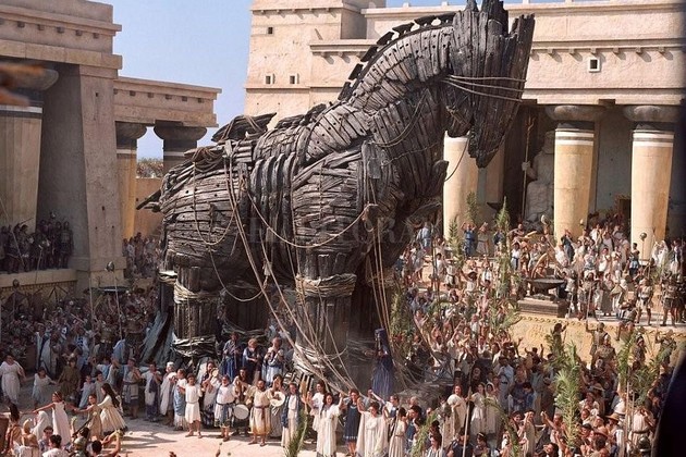 Según la leyenda, los griegos que estaban sitiando a Troya hicieron como si se estuvieran replegando y dejaron atrás un caballo de madera con soldados escondidos en su interior. Los habitantes de Troya aceptaron el caballo como regalo y lo trasladaron intramuros, exponiéndose a los astutos invasores.