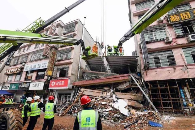 El siniestro ocurrió el pasado viernes en un edificio comercial ubicado en Changsha, provincia de Hunan en donde funcionaba un hotel, un cine y departamentos de vivienda y, según las autoridades, aún se desconocen las causas del derrumbe.