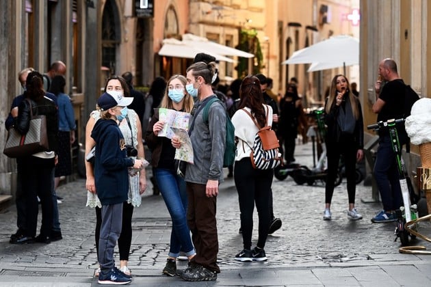 Imagen ilustrativa Citizens and tourists wearing protective masks walk in downtown Rome, on October 25, 2020, as the country faces a second wave of infections to the Covid-19 (the novel coronavirus). - Italy's Prime Minister Giuseppe Conte tightened nationwide coronavirus restrictions on October 25, 2020 after the country registered a record number of new cases, despite opposition from regional heads and street protests over curfews. Cinemas, theatres, gyms and swimming pools must all close under the new rules, which come into force on October 26, 2020 and run until November 24, while restaurants and bars will stop serving at 6pm, the prime minister's office said. (Photo by Vincenzo PINTO / AFP)