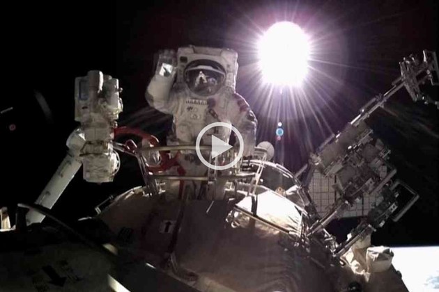 Wang y su colega Zhai Zhigang salieron del módulo la noche del domingo, saludando a la cámara mientras llegaban al exterior de la estación para instalar un aparato de suspensión y conectores de transferencia.