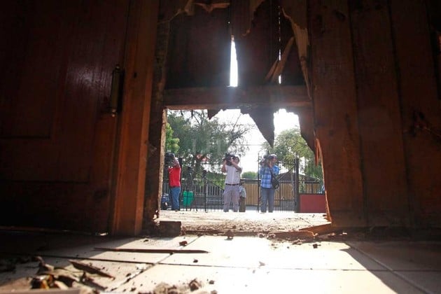 "A raíz del hecho resultaron con daños unos vidrios y la puerta principal de la iglesia, y se encontraron algunos elementos que fueron rotulados para ser enviados a la Fiscalía", dijo a la prensa el capitán de Carabineros Eduardo Grandón.