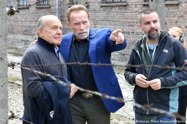 Hablando junto al presidente de la Fundación del Centro Judío de Auschwitz, Simon Bergson, hijo de sobrevivientes de Auschwitz, Schwarzenegger dijo: "Él nació después de la Segunda Guerra Mundial en esta maravillosa familia judía, y yo era el hijo de un hombre que luchó en la guerra nazi y fue un soldado. Una generación después, aquí estamos... Ambos luchamos contra los prejuicios, el odio y la discriminación".