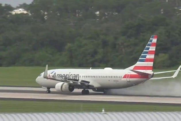 En esta oportunidad, un video filmado en las inmediaciones del Aeropuerto Internacional de Tampa muestra la secuencia: el Boeing 737 de American Airlines toma impulso y acelera, pero pronto sus neumáticos se envuelven en humo, por lo que el avión detiene su carrera al final de la pista. Todo en un minuto exacto. Según trascendió, uno de los neumáticos se prendió fuego, que luego se expandió hacia otras partes del tren de aterrizaje, mientras que otros de los neumáticos explotaron.