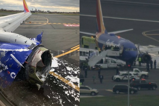 Un avión de pasajeros aterrizó hoy de emergencia en Filadelfia, Estados Unidos, luego de que uno de sus motores explotara a 9.000 metros del altura y de que esquirlas rompieran una ventanilla, en un incidente que dejó un muerto y siete heridos, informaron autoridades.