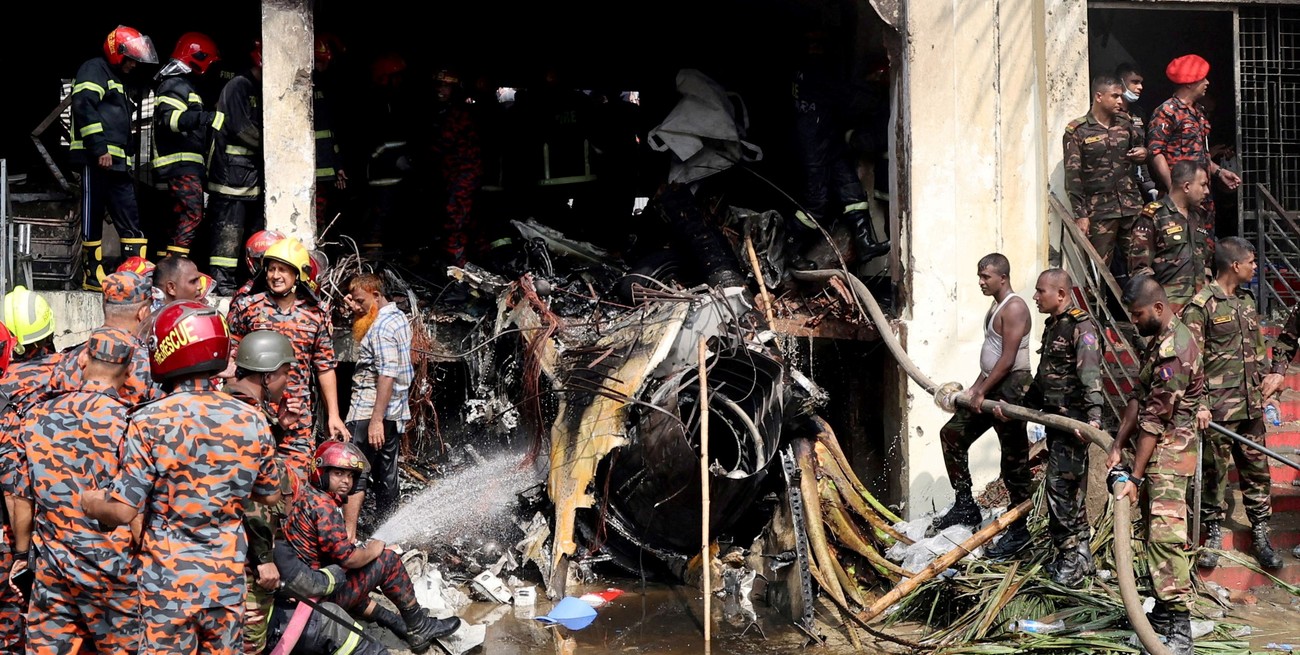 La aeronave de la Fuerza Aérea se estrelló en pleno horario escolar sobre un colegio en Daca. Entre las víctimas fatales hay alumnos y docentes; hay más de 50 heridos.