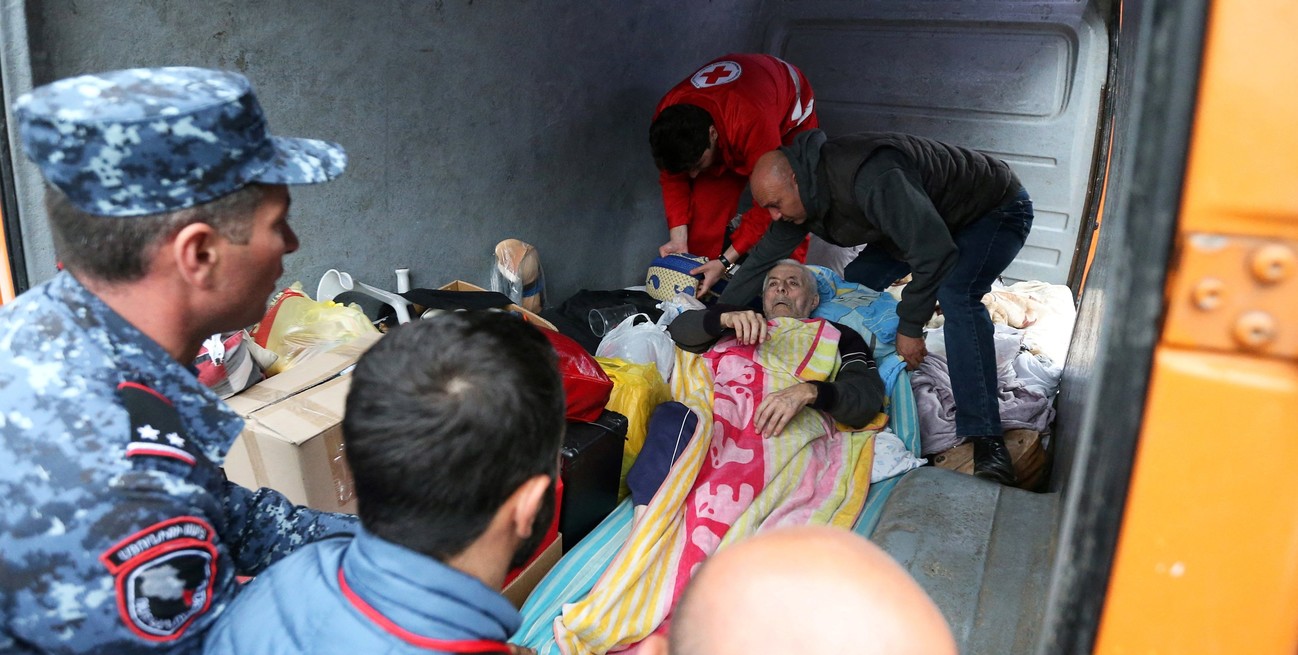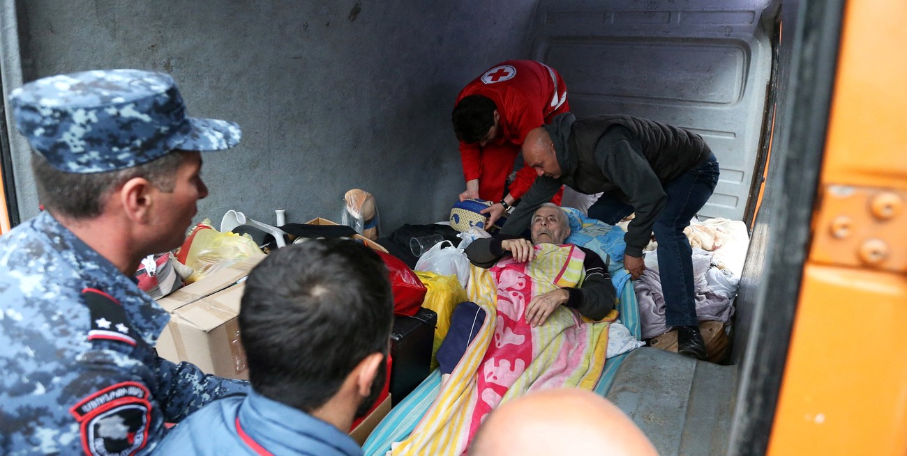 Autoridades de Nagorno Karabaj dijeron que ya habían partido 30 colectivos con desplazados y que estaban alojados en la base de las fuerzas de mantenimiento de la paz rusas en Ivanián.