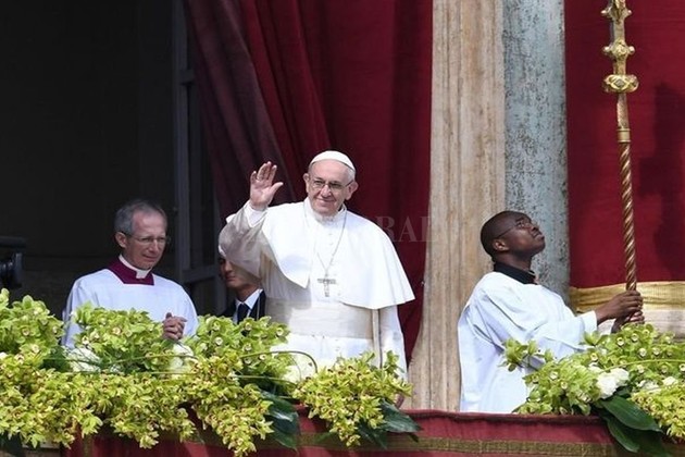 "Y, hoy, nosotros pedimos frutos de paz para el mundo entero, comenzando por la amada y martirizada Siria, cuya población está extenuada por una guerra que no tiene fin", dijo desde el balcón central de la Basílica de San Pedro al dar el tradicional mensaje "Urbi et Orbi" ("A Roma y el mundo").