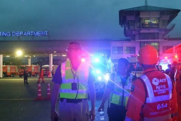 La aeronave aterrizó la tarde del martes en el aeropuerto Suvarnabhumi y las ambulancias se precipitaron hacia el aparato con sirenas y luces encendidas.