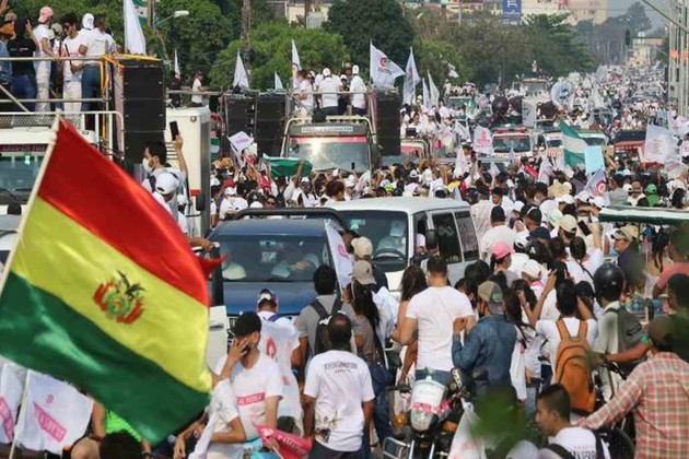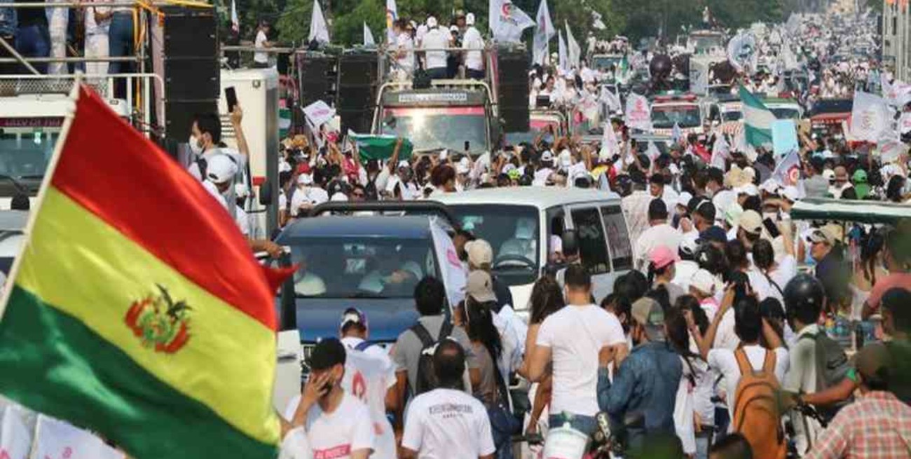 Quizás pensando en restar votos en el feudo electoral de Luis Fernando Camacho, de Creemos, tercero en las encuestas, que se rodeó de los suyos en la capital cruceña en una multitudinaria caravana.