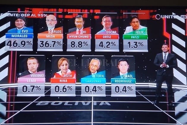 Tenés que leerElecciones en Bolivia: Cancelaron el escrutinio provisorioAsí, al obtener una ventaja de más de 10 puntos sobre su perseguido, el actual Presidente obtendría su re-reelección en primera vuelta.