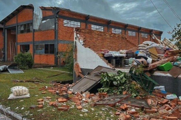 Fuertes vientos dañaron techos y edificios en Alfredo Chaves, distrito de Flores da Cunha - Soldado Lucas Oliveira/ASCOM/Defensa Civil RS/ND Mais