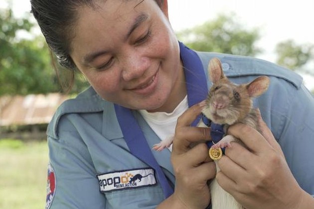 APOPO indicó en un comunicado que esta rata gigante africana nacida en Tanzania en 2013 "ha salvado directamente la vida de hombres, mujeres y niños que sufrieron el impacto de minas ocultas y otros vestigios mortales de la guerra".