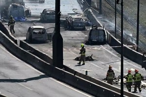 La dinámica del episodio también derivó en un choque en cadena: la explosión y la expansión del incendio alcanzaron a vehículos que circulaban por la autopista y a otros que estaban en predios cercanos.