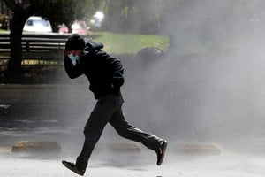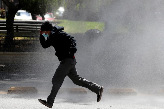 Sin embargo, a los pocos minutos comenzaron algunos incidentes con el lanzamiento de piedras por parte de los grupos manifestantes y la respuesta de carabineros, a través de sus carros lanzaguas y lanza gases lacrimógenos.