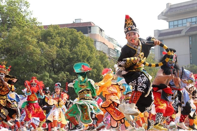 Artistas realizan una presentación durante un evento de carnaval de danza Yingge Xinhua/Yao Jun