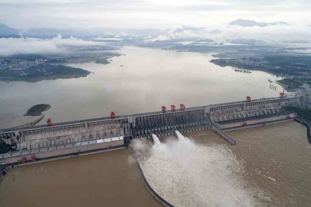 La enorme Presa de las Tres Gargantas, en el Yangtsé, abrió tres compuertas la semana pasada después de que el nivel del agua embalsada subiera más de 15 metros (50 pies) por encima de los niveles de inundación. Se esperaba que el martes llegara otra oleada de agua de crecidas a la presa.