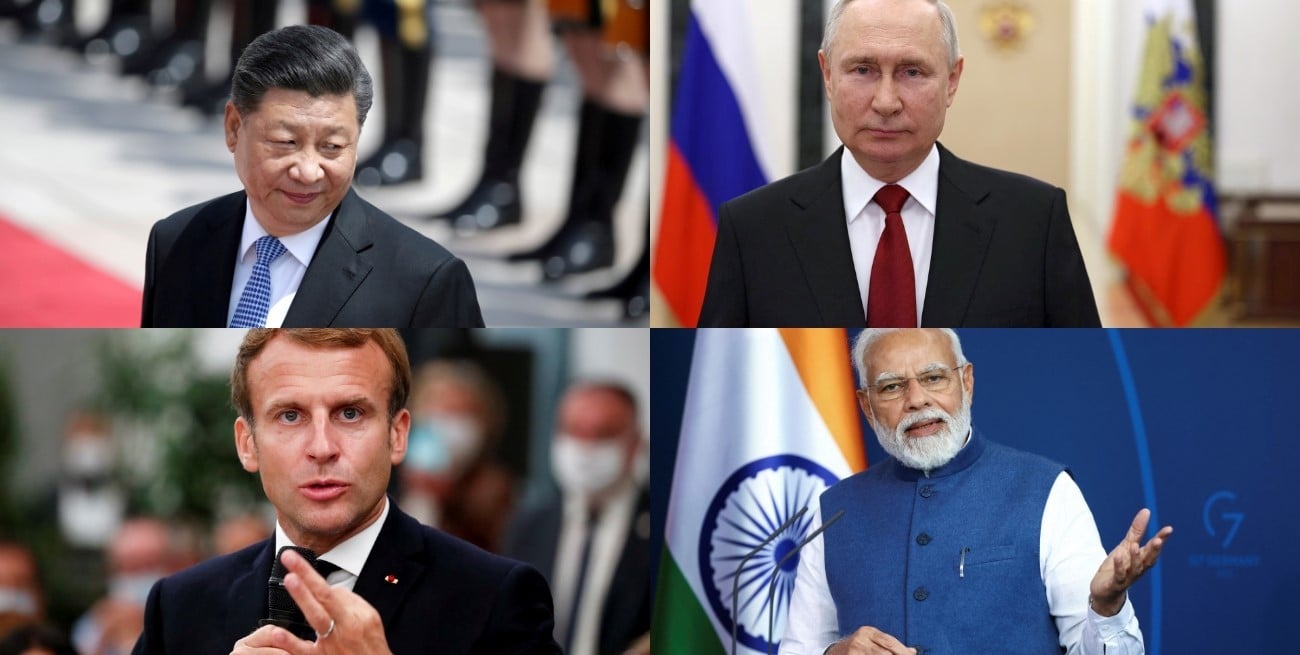 Xi (China), Putin (Rusia), Macron (Francia) y Modi (India), agentes de un tablero que busca reacomodarse. Crédito: Reuters
