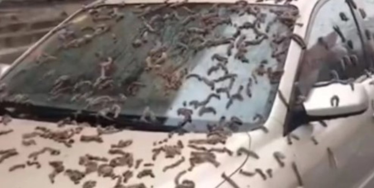 En varios videos en redes sociales se pueden ver como estos insectos aparecieron cubriendo las calles, vehículos y casas en China, incluso algunas personas recomendaban el uso de paraguas para cuidarse de los gusanos que caían del cielo.