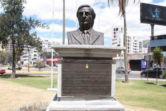 El busto es una obra del artista José Ávila, realizada en el 2013 y se ha convertido en una de las figuras más atacadas en espacios públicos de Quito, según la Gerencia de Espacio Público de la Epmmop. Fue una donación del Gobierno argentino y compartía el espacio en la Plaza Argentina con esculturas en honor de otros personajes destacados en la historia del país del sur como Domingo Faustino Sarmiento, Alejandro Neyberi, Guillermo Federico Brown, José de San Martín, Manuel Belgrano y Carlos Gardel, resalta el citado medio.
