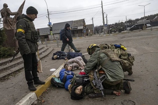 Un grupo de habitantes de Irpín, ciudad cercana a Kiev, que eran evacuados fueron atacados por las fuerzas armadas invasoras cuando escapaban.