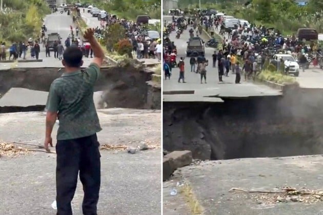 El impactante colapso de una carretera en el distrito indonesio de Bener Meriah quedó registrado en un video y sembró el pánico entre los residentes. El derrumbe ocurrió cuando un socavón, formado por la intensa erosión del agua, cedió por completo bajo la fuerza del paso hidráulico. En las imágenes se aprecia cómo el asfalto se quiebra y se desploma en cuestión de segundos, mientras los vecinos observan sin poder creer lo que estaba sucediendo.