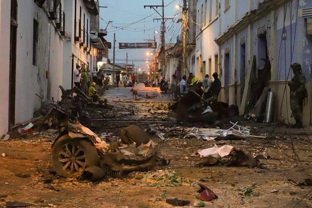 "Sabemos que los que están detrás de este atentado son los bandidos de la Dagoberto (Ramos), bandidos que son de esas disidencias" de la extinta guerrilla de las FARC, dijo el presidente Iván Duque desde la calle en la que explotó la bomba. "A ellos solamente les queda un camino: se someten o los vamos a enfrentar con contundencia", agregó.