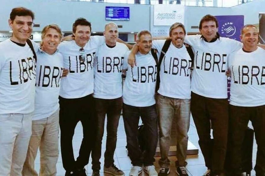 Cinco miembros de este grupo de amigos argentinos murieron en el atentado: Hernán Diego Mendoza (izquierda), Alejandro Damián Pagnucco (segundo desde la izquierda), Ariel Erlij (tercero desde la izquierda), Diego Enrique Angelini (segundo desde la derecha) y Hernán Ferruchi (tercero desde la derecha).