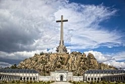 El monumento, coronado por una gran cruz blanca de 150 metros de altura, fue dedicado por Franco a todos los caídos en la Guerra Civil (1936-1939) y alberga restos de unos 32.000 fallecidos en el conflicto por ambos bandos.